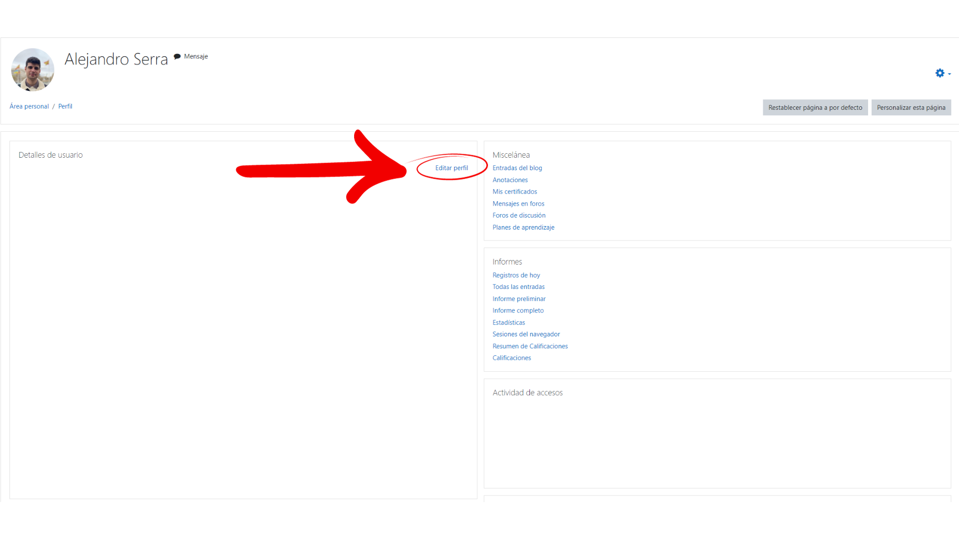 ¿Puedo cambiar mis datos? ¿Cómo se modifica mi perfil?Si deseas cambiar o incluir datos en el perfil del campus sólo tienes que entrar en el apartado "Perfil" de tu nombre en la esquina superior derecha. Este apartado se encuentra en la parte superior de la página.
