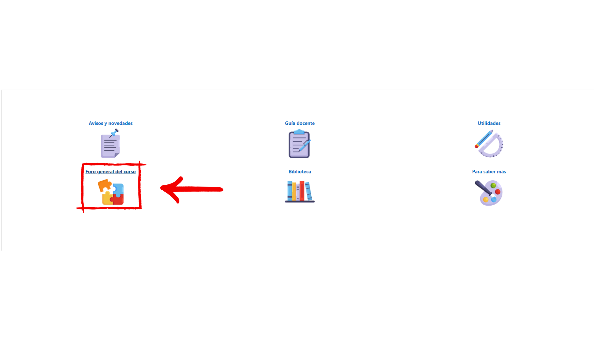 El foro general se encuentra en la página principal del curso y está fuera de los módulos. En él podrás encontrar numerosos hilos de opinión en los que puedes entrar y participar enviando tu mensaje.